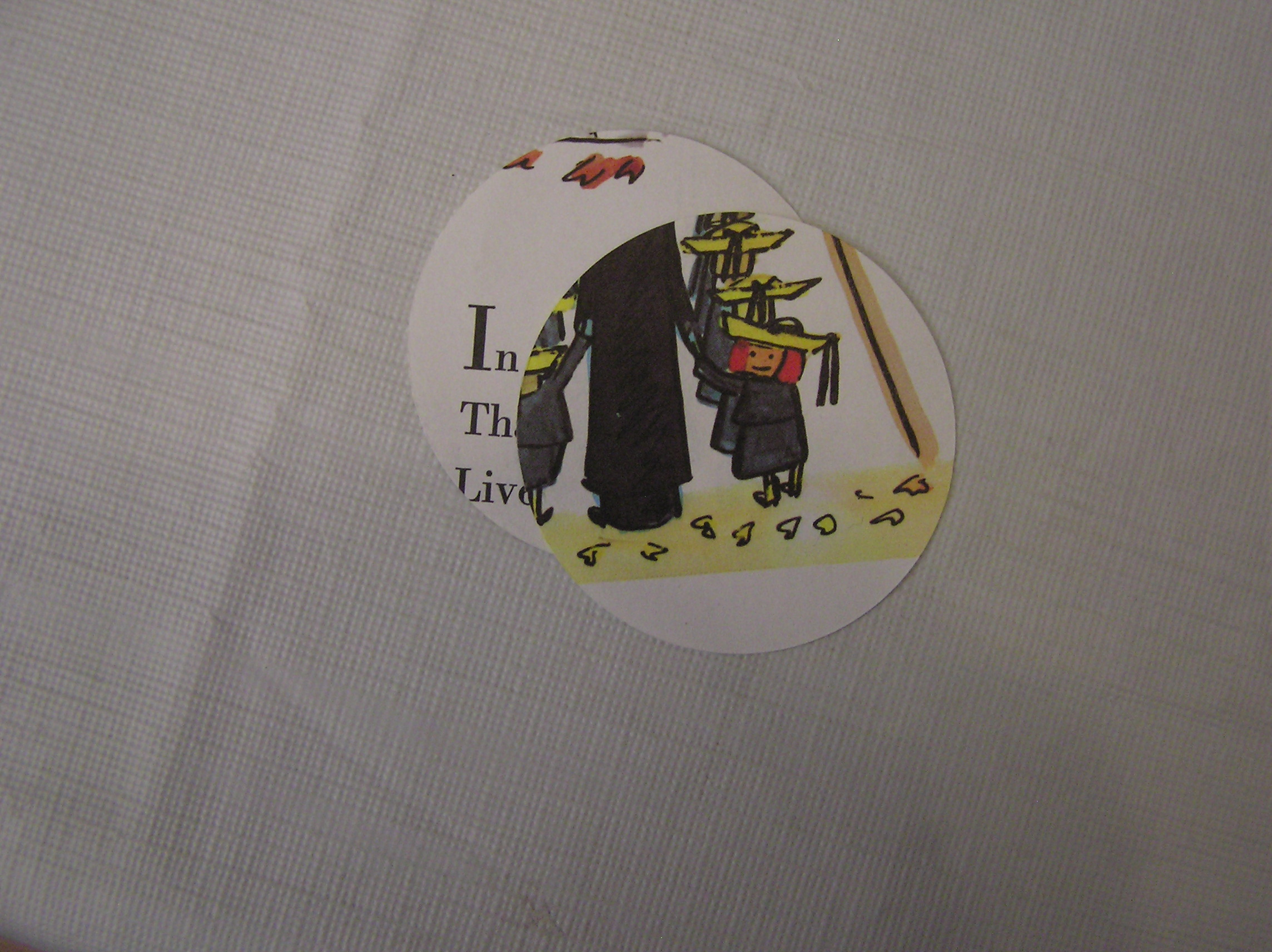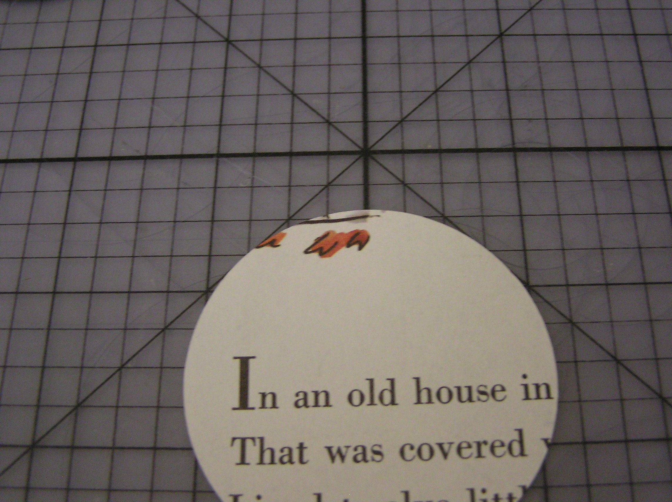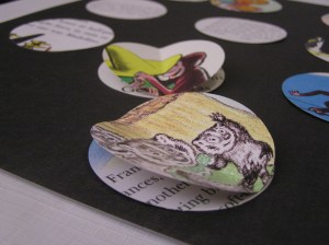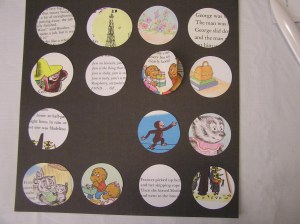 And then, for that matter, what I would be putting the circles on. The pages are several shades of almost-white, so white or cream might look funny. I also didn’t want to compete with the colors in the pictures, so I settled on black. It recedes and lets the book pages be the star.