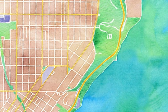 It’s okay. Not a great photo — just a snapshot of a storefront. But in watercolor: