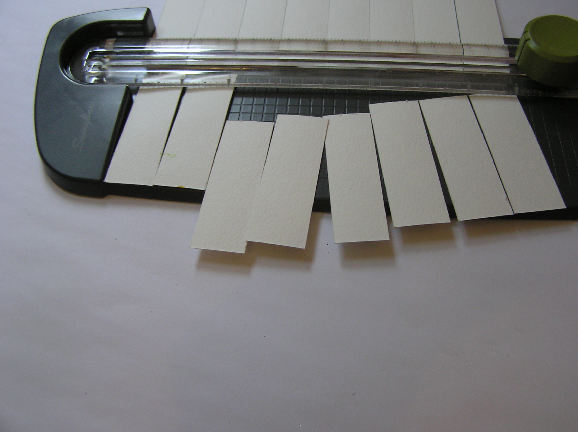 7.   SPECIAL CUTTING TIP: I measured out one inch increments on one side and three inch on the other. If you have extra on one side, which you likely will, make your marks there and DON’T cut all the way through. You’ll end up with strips attached across the top. Then you can line it up and cut once to get several pieces, which saves a ton of time.