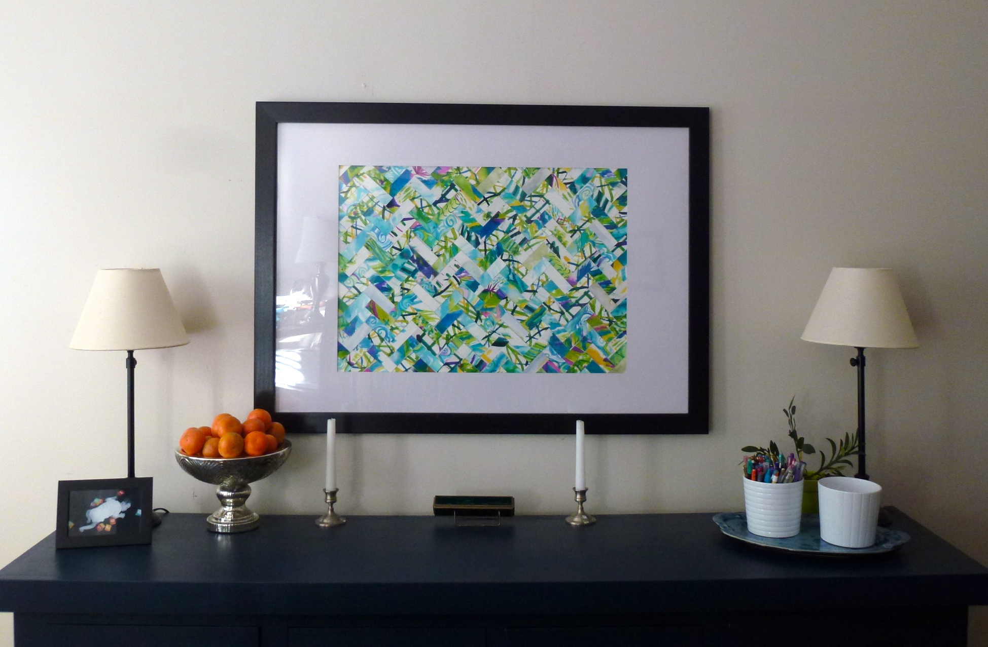 I just had to do one of my own. I’ve been looking for something to replace my large/boring/generic/beige hand-me-down art from my dad in the dining room and this seemed like the perfect choice. Plus, she did it with her kids—so cute.