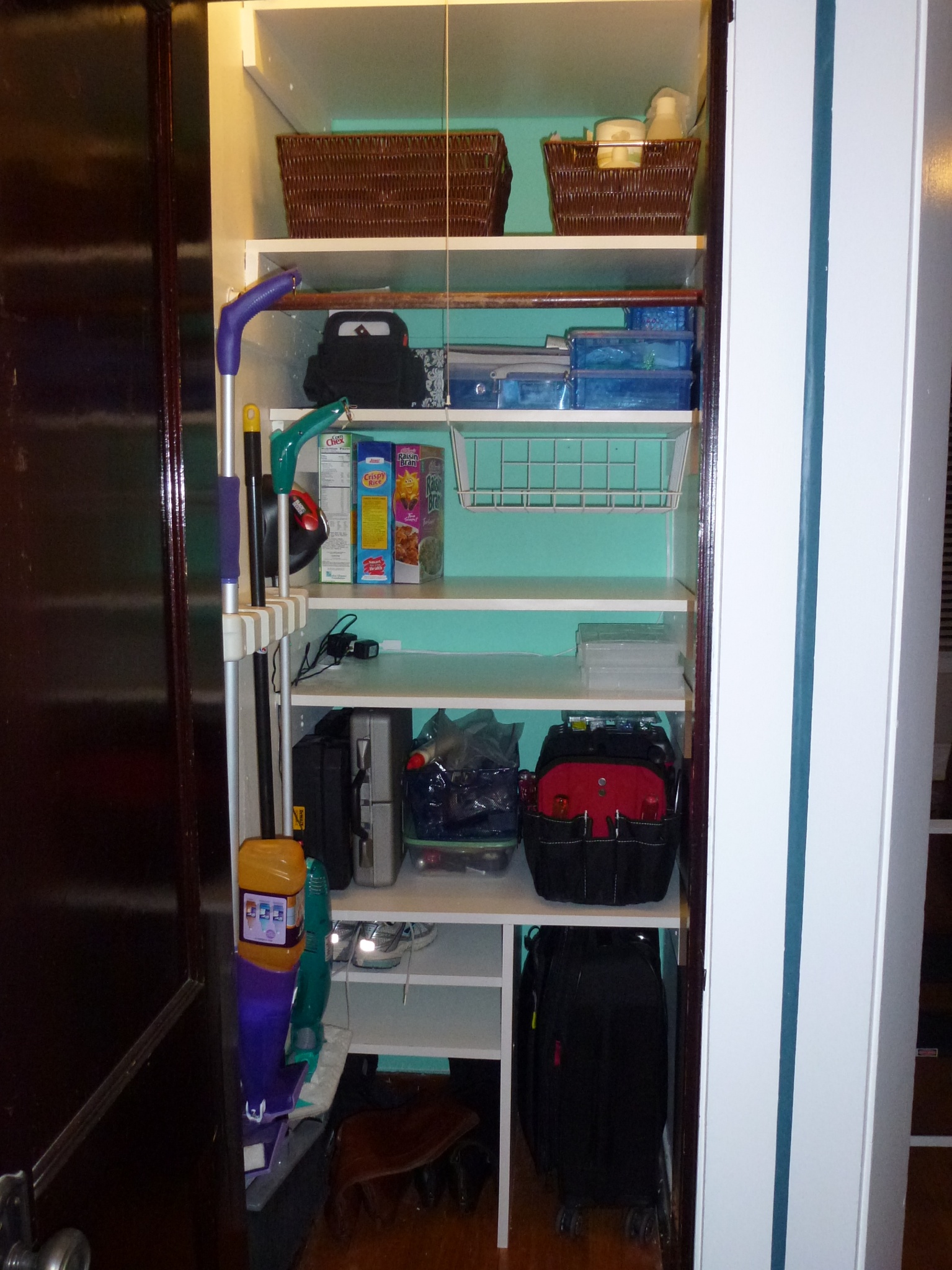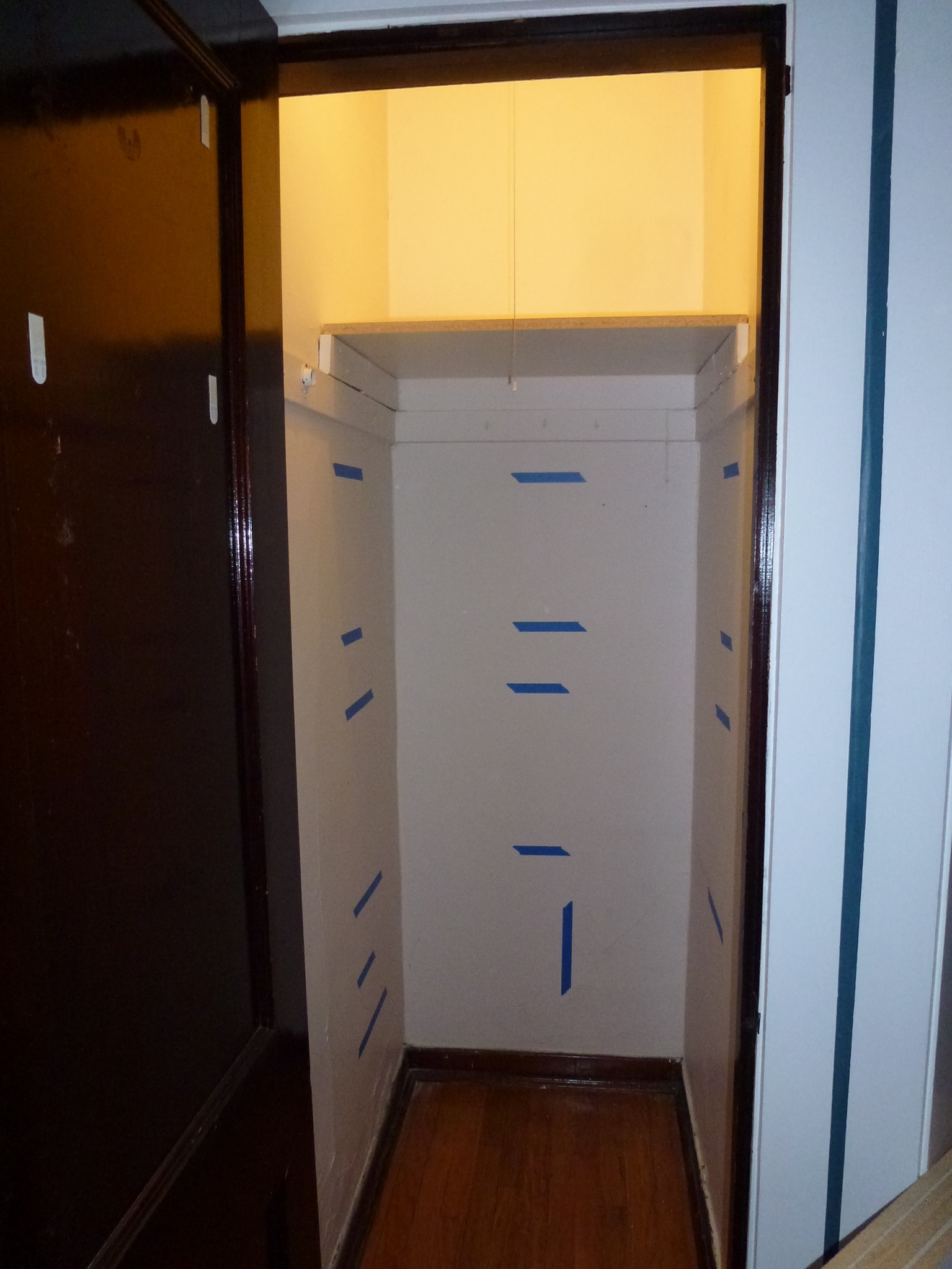 The biggest win we were going to get was squeaking out some more storage from the hall closet…which is the only real closet, other than the bedroom.*