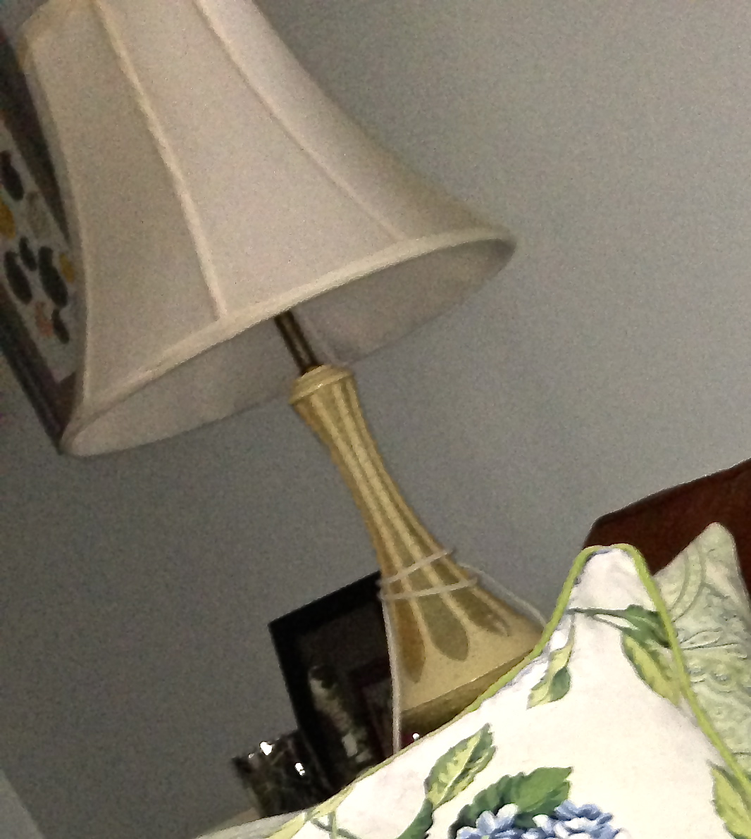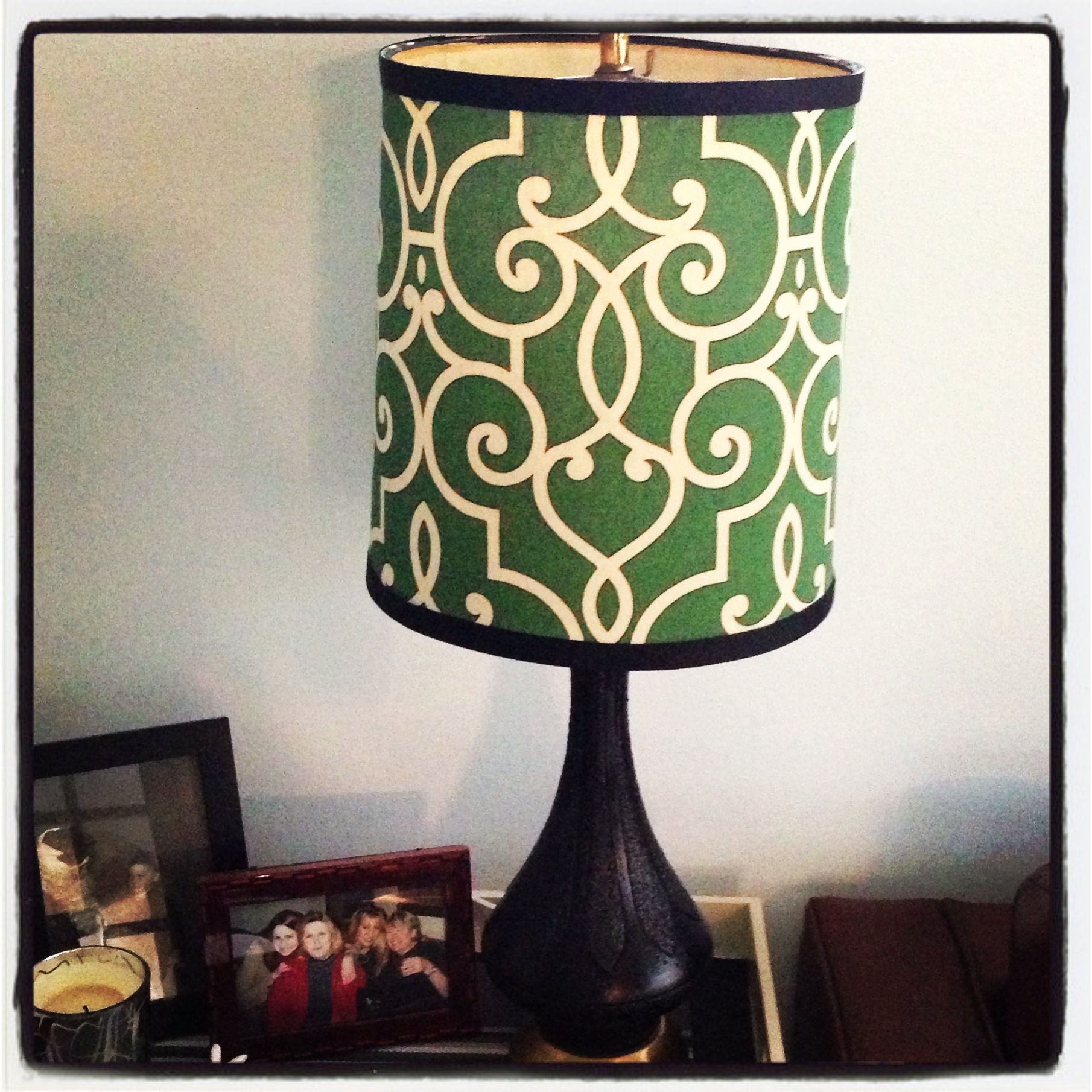 I’m really happy with the results. It’s dramatic, and looks a lot more upscale than it really is. Not bad for a free rummage sale lamp and $15 in paint and fabric.