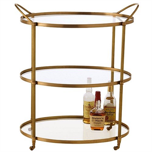 Now, I’ve been eyeing brass for awhile. I usually associate it with really horrible cheap light fixtures. (I’ve been an apartment dweller for over a decade now. I know cheap brass light fixtures.) But it seems to be making a comeback, especially when it comes to true vintage brass. Look at this beautiful antique bar cart: